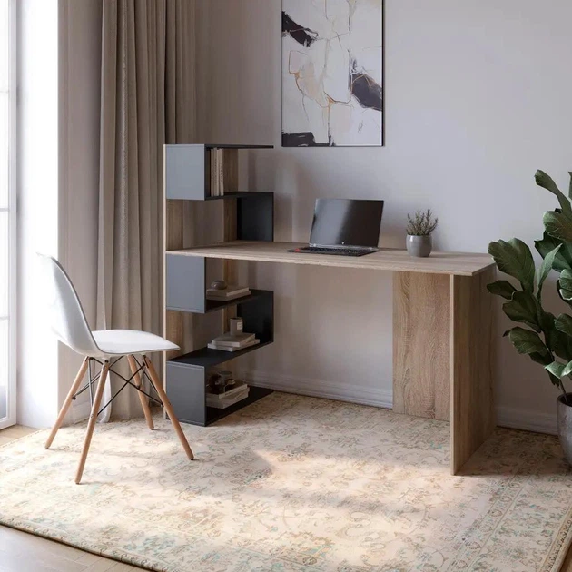 Cтіл комп'ютерний з полицями Еверест Джеко 1416Р правий Дуб сонома + Антрацит 141,6х60х122,4 см