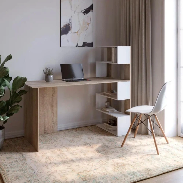 Cтіл комп'ютерний з полицями Еверест Джеко 1416Р правий Дуб сонома + Нимфея альба 141,6х60х122,4 см