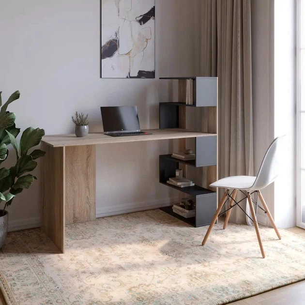 Cтіл комп'ютерний з полицями Еверест Джеко 1416L лівий Дуб сонома + Антрацит 141,6х60х122,4 см