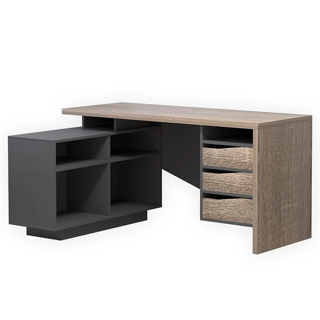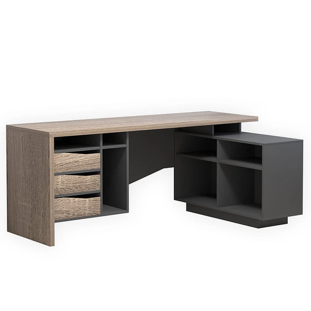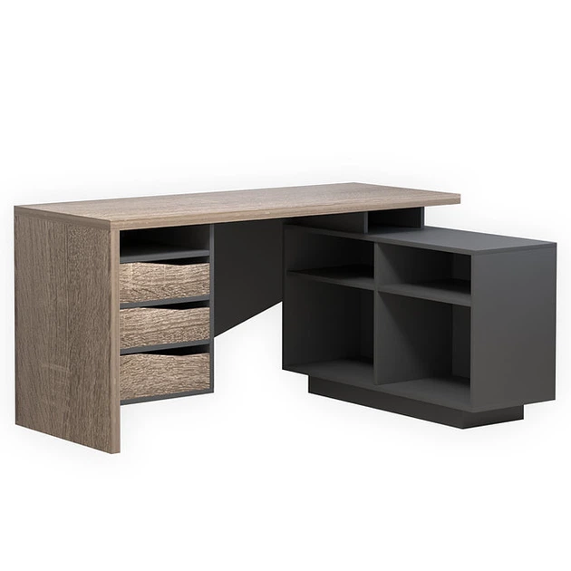 Стіл комп'ютерний в кабінет, офіс з ламінованої ДСП 1575 Connect 3/R правий дуб сонома трюфель/антрацит Intarsio