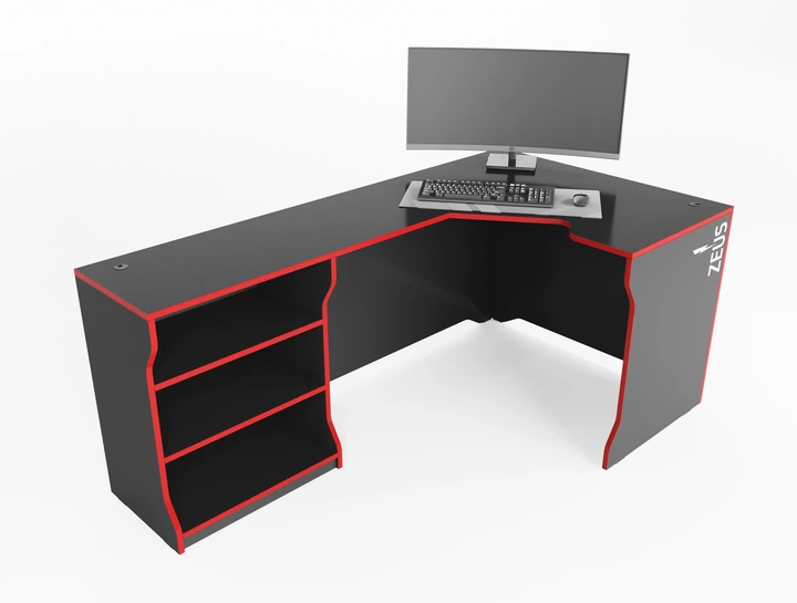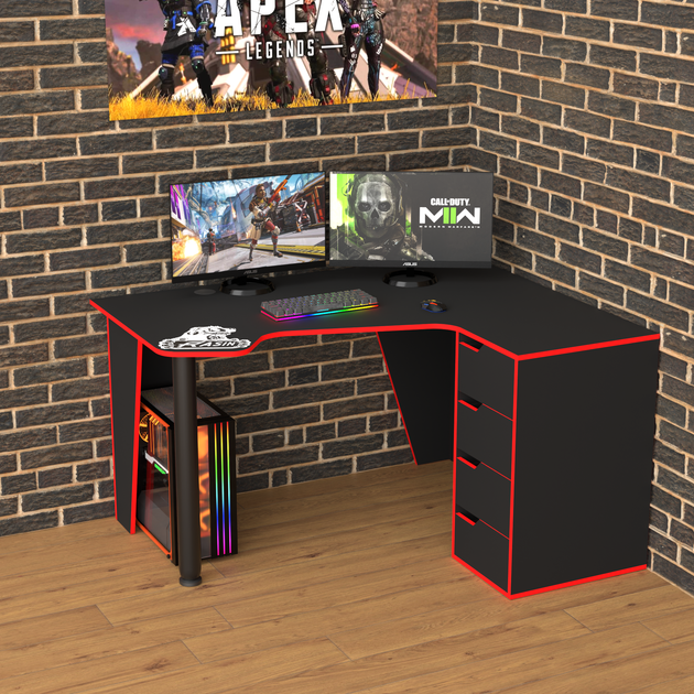 Стіл ігровий кутовий геймерський ергономічний Rasin RS-11 Zeus Чорно-червоний (ламінована ДСП) (RS-11)