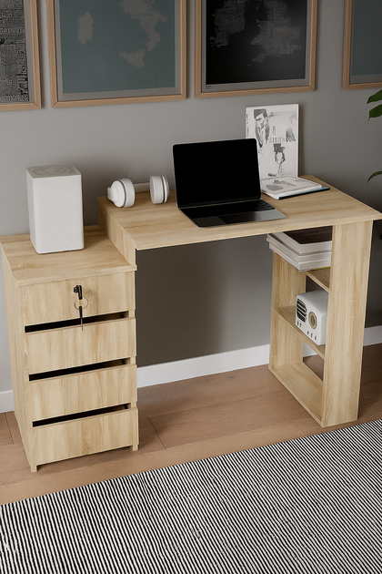 Комп'ютерний стіл (на 4 ящики) СЛТ-5, офісний стіл, стіл для школяра колір Дуб сонома