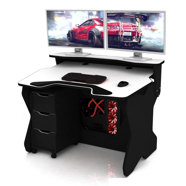 Геймерський стіл DX14 CONSTRUCTOR професійний трансформований стіл-парта чорний з білим