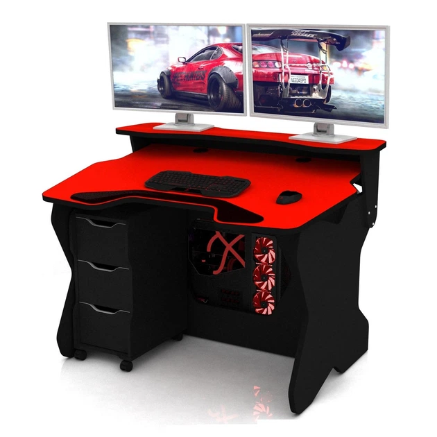 Геймерський стіл DX14 CONSTRUCTOR професійний трансформований стіл-парта чорний з червоним