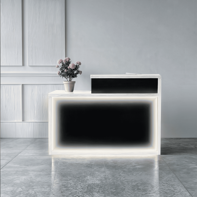 Стійка адміністратора пряма Tobi Sho Ресепшн/4 лівостороння для офісу, салону з підсвічуванням, 1600х600х1050 Білий/Чорний