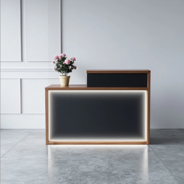 Стійка адміністратора пряма Tobi Sho Ресепшн/4 лівостороння для офісу, салону з підсвічуванням, 1400х600х1050 Фаєрвуд/Чорний