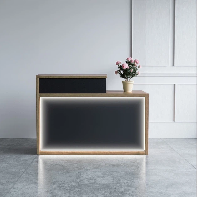 Стійка адміністратора пряма Tobi Sho Ресепшн/4 правостороння для офісу, салону з підсвіткою, 1400х600х1050 Дуб аппалачі/Чорн