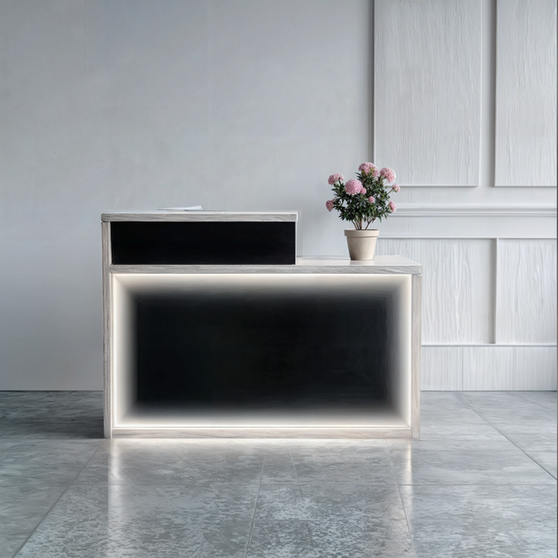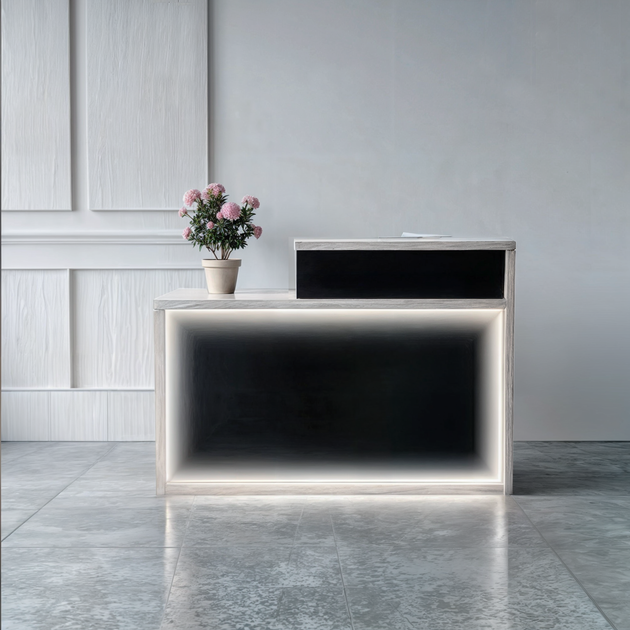 Стійка адміністратора пряма Tobi Sho Ресепшн/4 правостороння для офісу, салону з підсвіткою, 1600х600х1050 Білий/Чорний