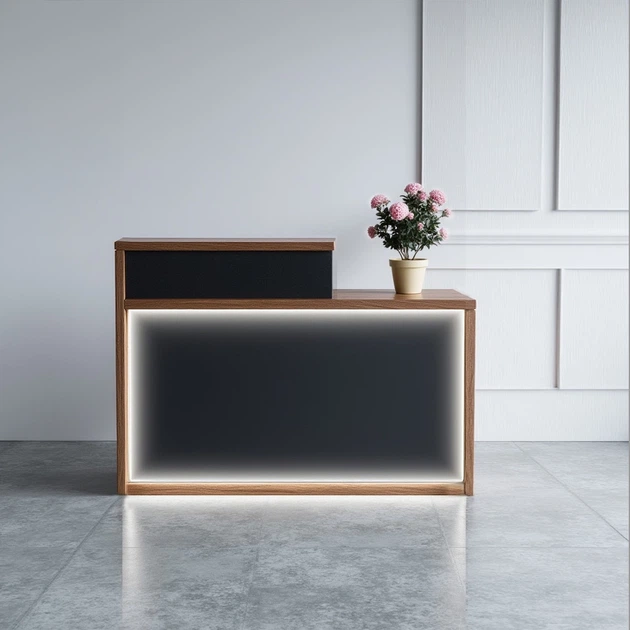Стійка адміністратора пряма Tobi Sho Ресепшн/4 лівостороння для офісу, салону з підсвічуванням, 1600х600х1050 Фаєрвуд/Чорний