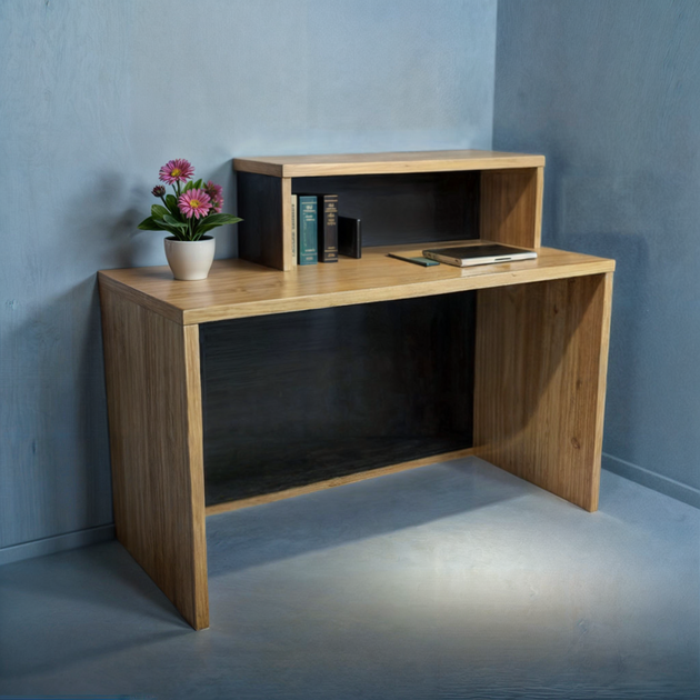 Стійка адміністратора пряма Tobi Sho Ресепшн/4 лівостороння для офісу, салону з підсвічуванням, 1400х600х1050 Дуб крафт біли