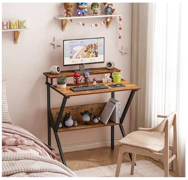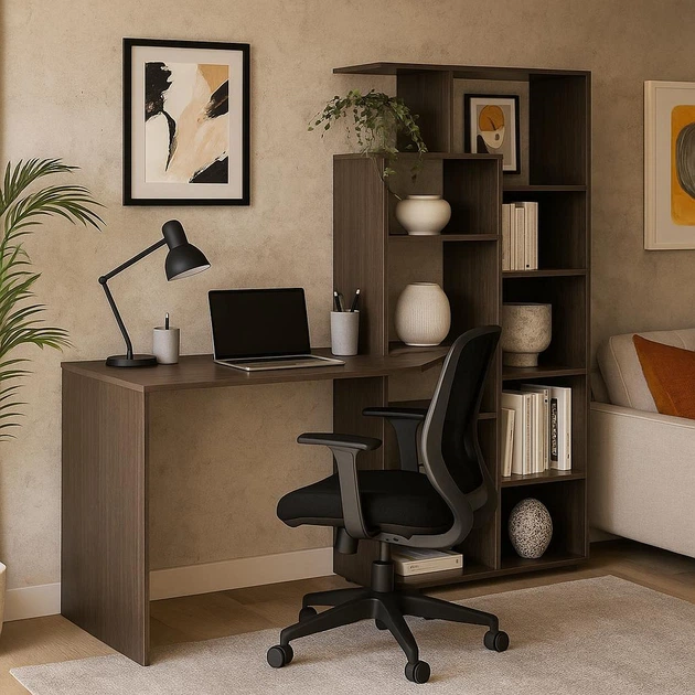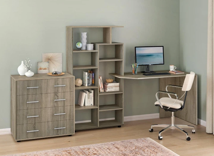 Місткий великий сучасний письмовий комп'ютерний стіл для пк ноутбука зі стелажем надбудовою з відкритими полицями для книг в