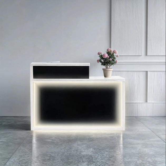 Стійка адміністратора пряма Tobi Sho Ресепшн/4 правостороння для офісу, салону з підсвіткою, 1400х600х1050 Білий/Чорний