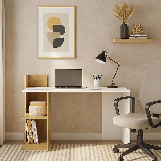 Стіл письмовий робочий 120 см для ноутбука з полицями для роботи вдома для школяра підлітка для уроків у сучасному стилі з Л