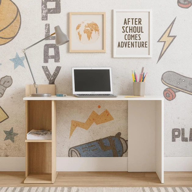 Письмовий стіл робочий 120 см для ноутбука з полицями для роботи вдома для школяра підлітка для уроків у сучасному стилі з Л