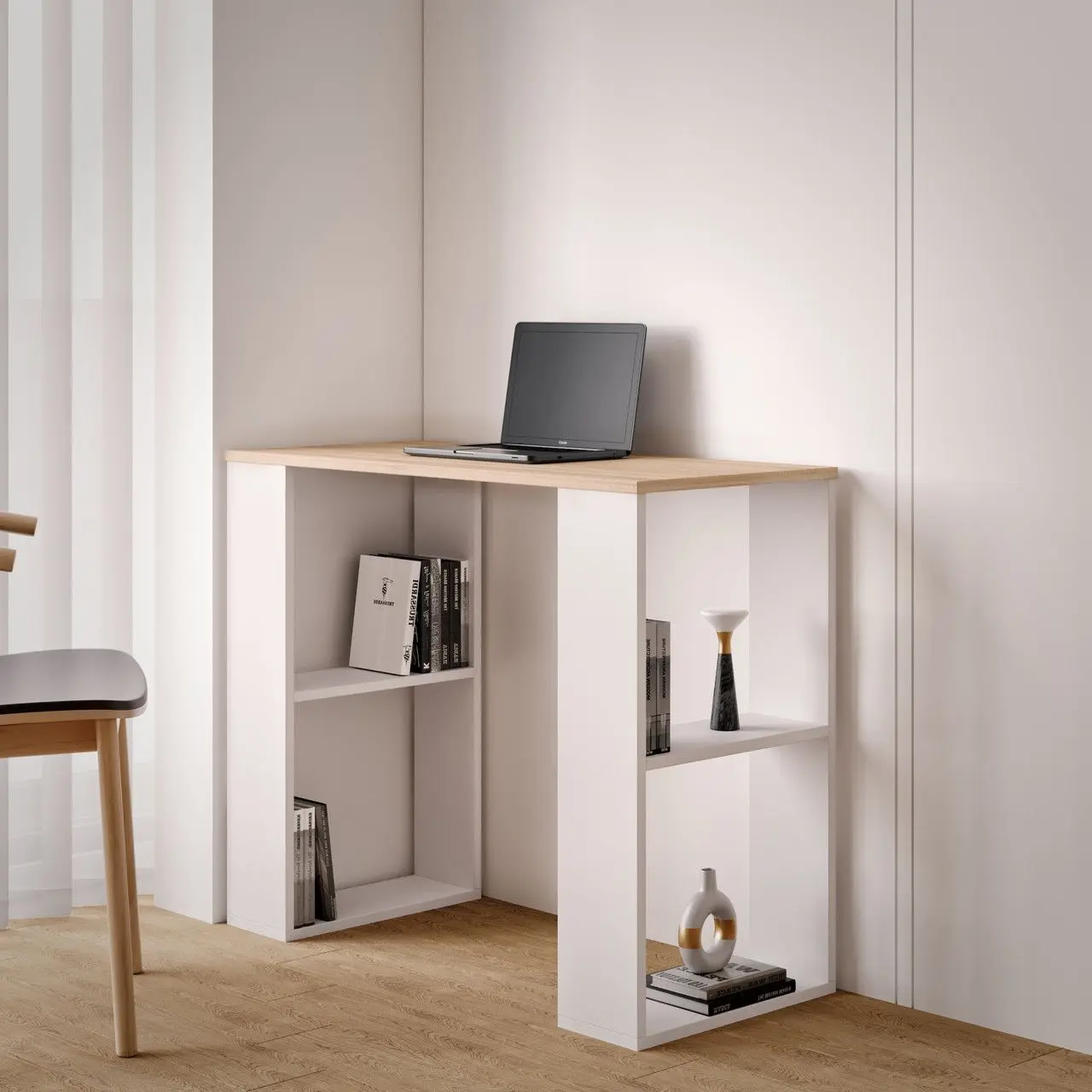 Стіл комп'ютерний письмовий з чотирма поличками з ДСП S-11 Дуб сонома + білий
