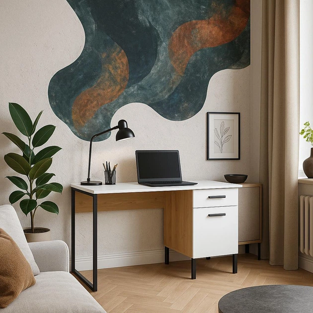 Письмовий робочий стіл 120 на 60 см для ноутбука з тумбою та шухлядою з металевими ніжками в сучасному стилі для роботи вдом
