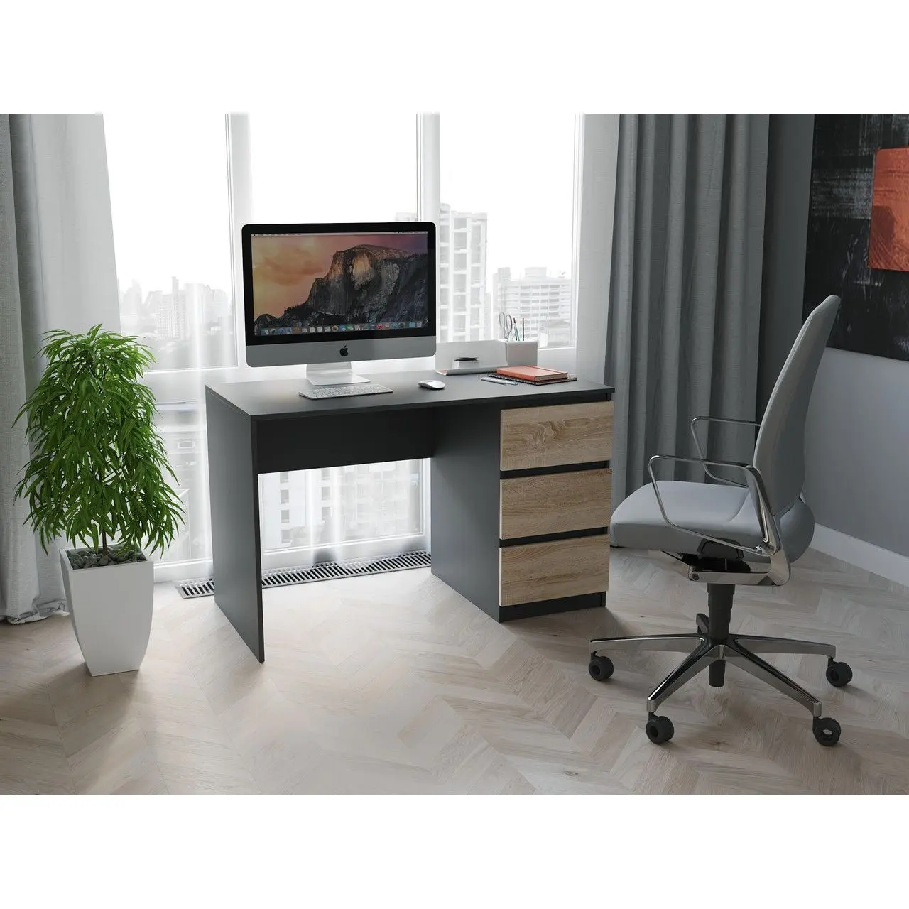 Стіл комп'ютерний письмовий для дому з вбудованою тумбою з ДСП II FT-224 Антрацит+дуб