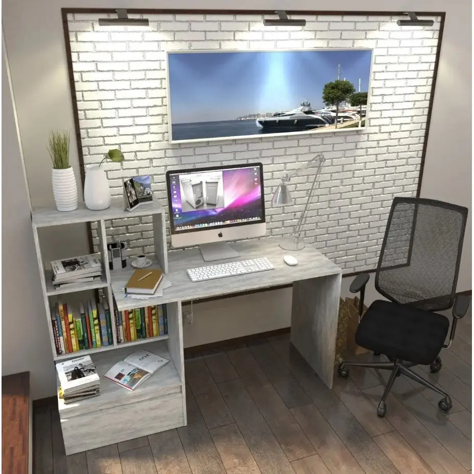 Стіл комп'ютерний письмовий для дому з 4 комірками та шухлядою з ДСП II FST-5 Бетон