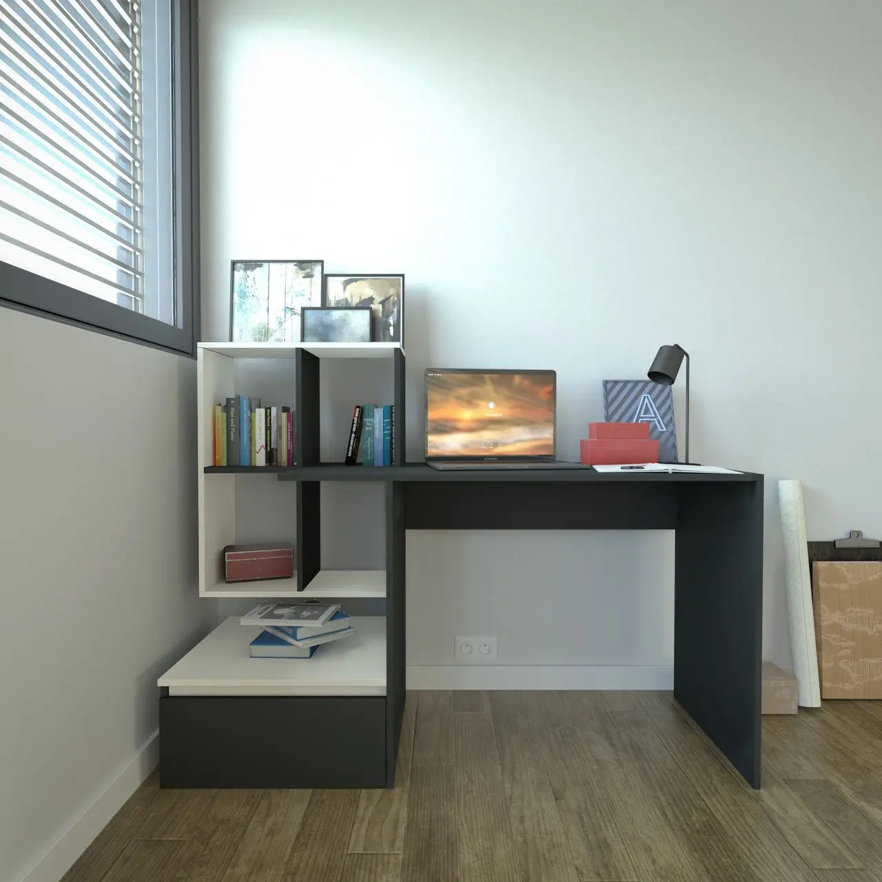 Стіл комп'ютерний письмовий для дому з 4 комірками та шухлядою з ДСП II FST-5 Антрацит+білий