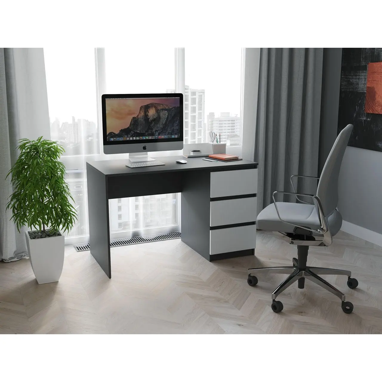 Стіл комп'ютерний письмовий для дому з вбудованою тумбою з ДСП II FT-224 Антрацит+білий