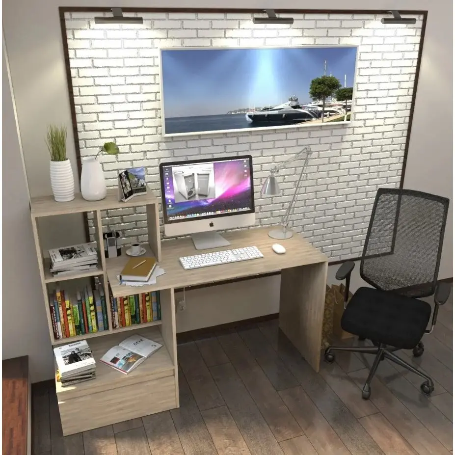 Стіл комп'ютерний письмовий для дому з 4 комірками та шухлядою з ДСП II FST-5 Дуб сонома