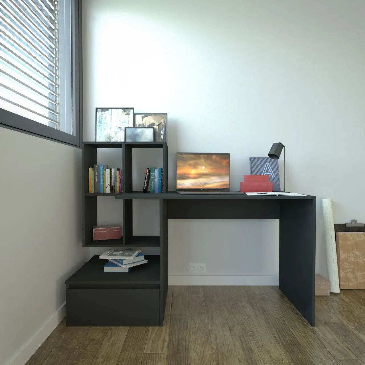 Стіл комп'ютерний письмовий для дому з 4 комірками та шухлядою з ДСП II FST-5 Антрацит