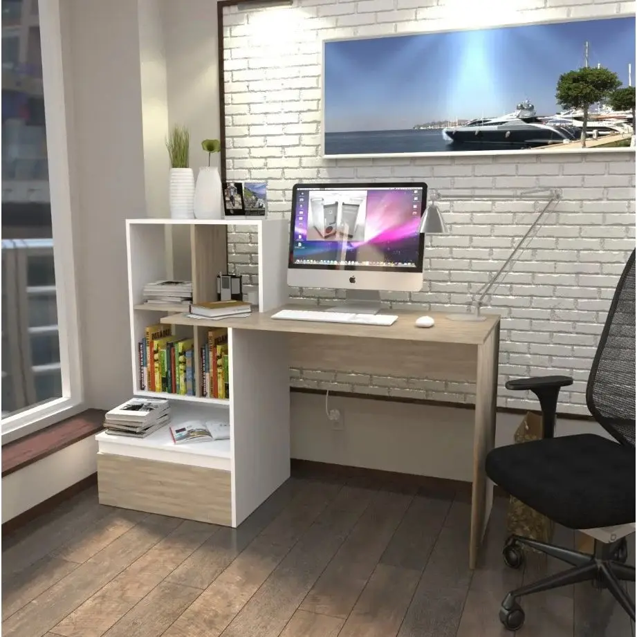 Стіл комп'ютерний письмовий для дому з 4 комірками та шухлядою з ДСП II FST-5 Дуб сонома + білий