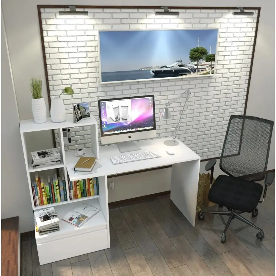 Стіл комп'ютерний письмовий для дому з 4 комірками та шухлядою з ДСП FST-5 Білий