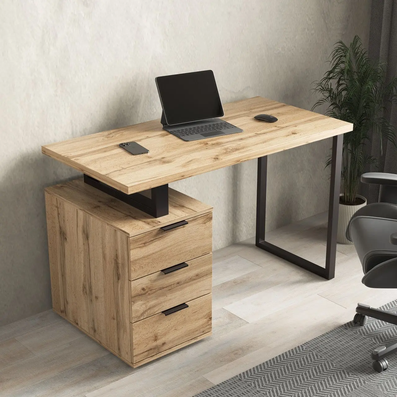 Стіл комп'ютерний письмовий у стилі лофт із тумбою на 3 шухляди II FMX-3 Темний бетон