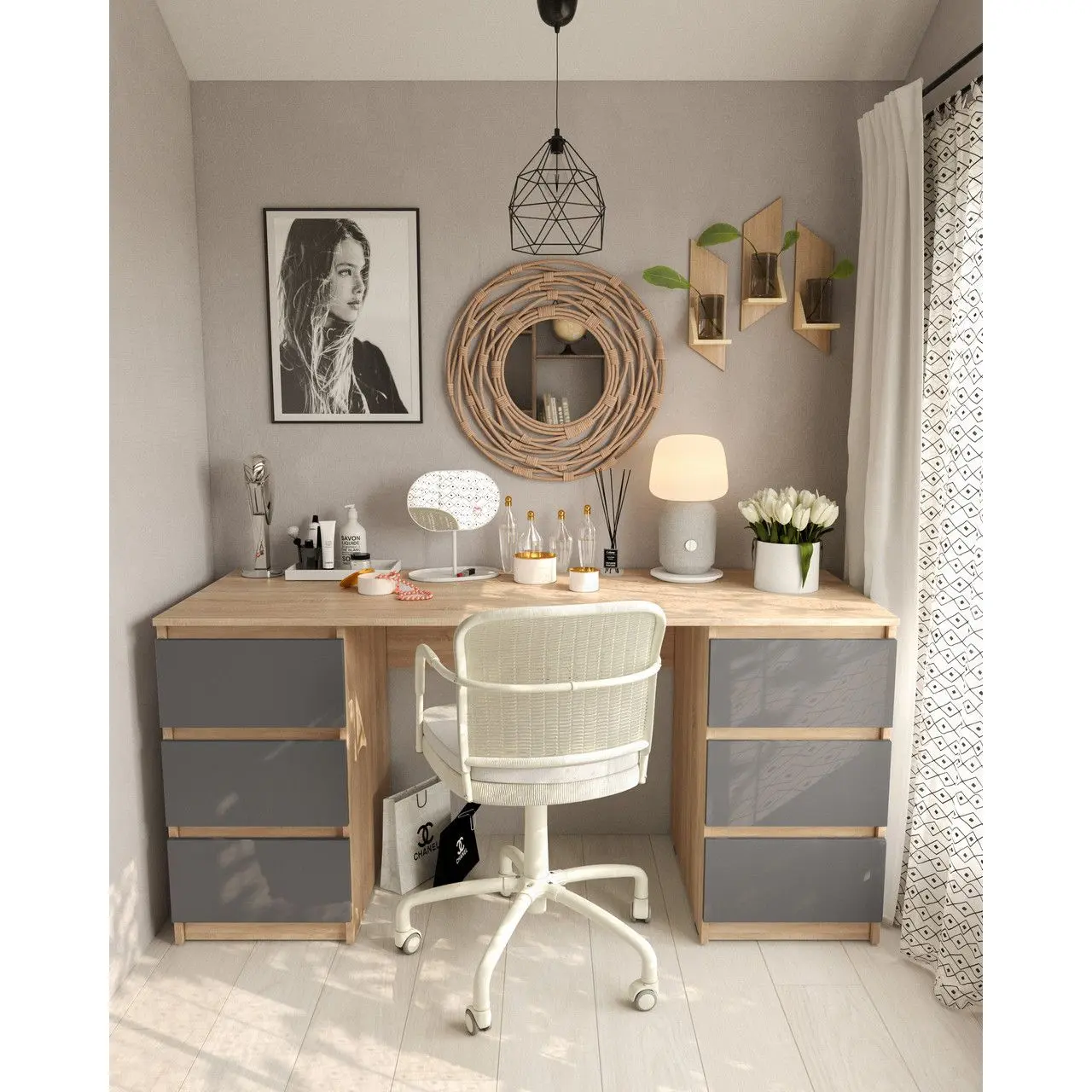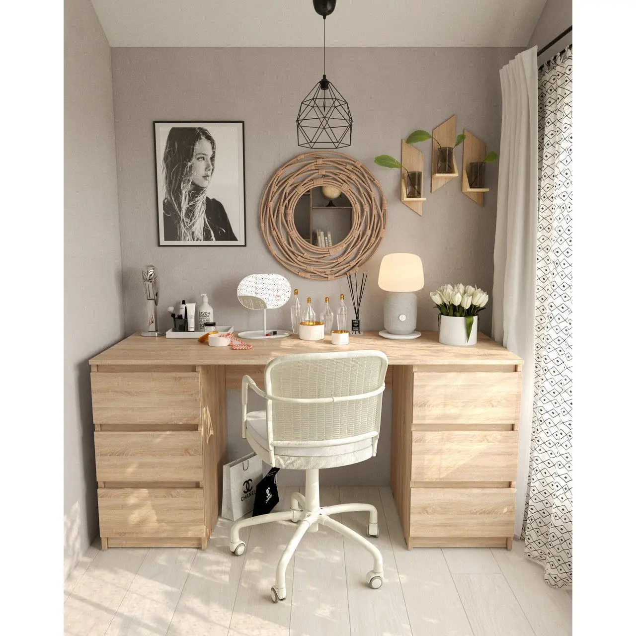 Стіл комп'ютерний з двома тумбами на 6 ящиків, письмовий стіл з ДСП II FT-228 Дуб Сонома
