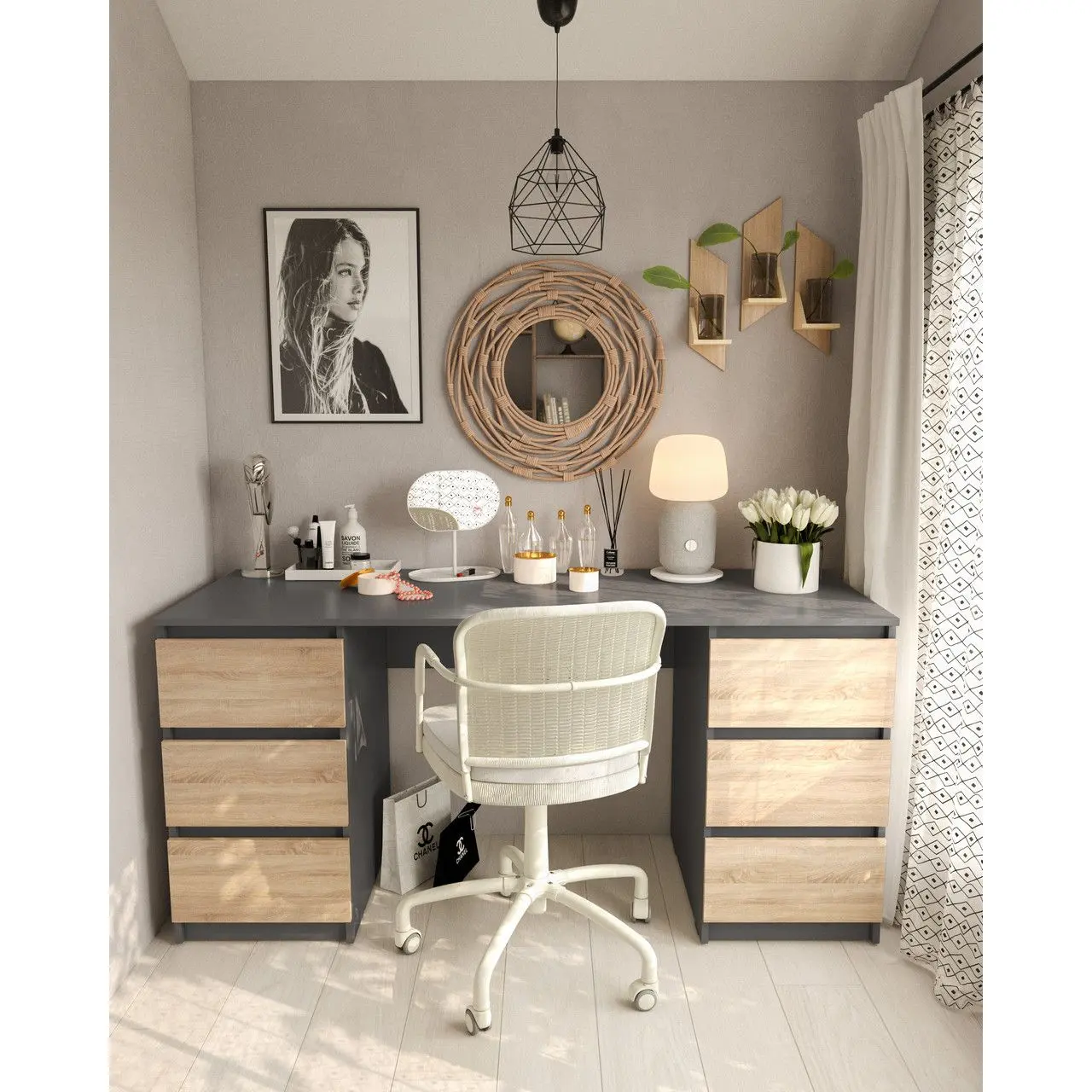 Стіл комп'ютерний з двома тумбами на 6 ящиків, письмовий стіл з ДСП II FT-228 Антрацит+дуб