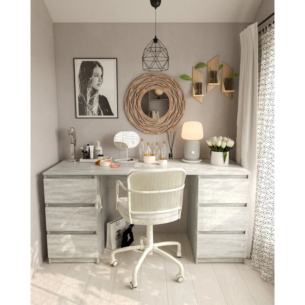 Стіл комп'ютерний з двома тумбами на 6 ящиків, письмовий стіл з ДСП II FT-228 Бетон+білий