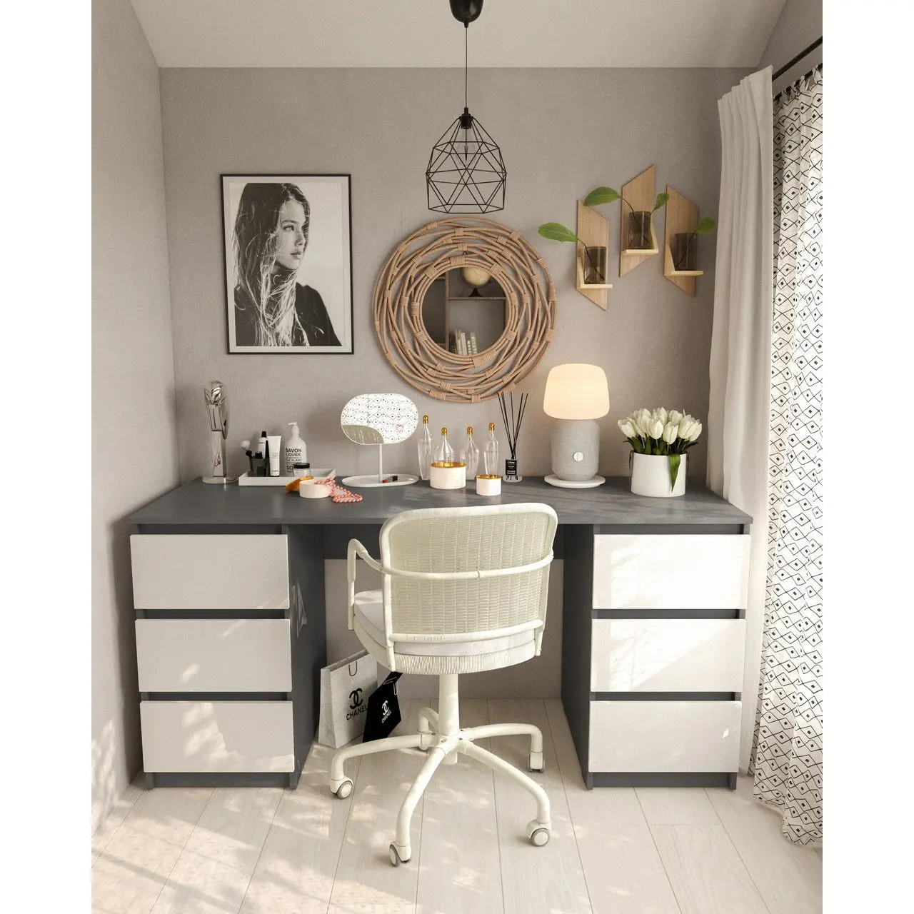 Стіл комп'ютерний з двома тумбами на 6 ящиків, письмовий стіл з ДСП II FT-228 Антрацит+білий