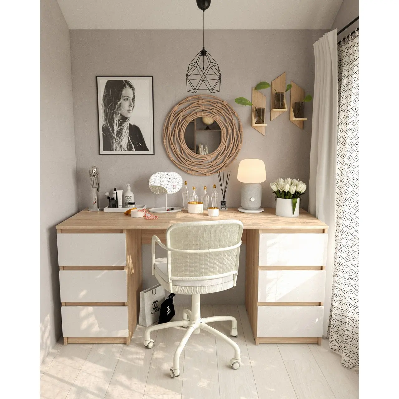 Стіл комп'ютерний з двома тумбами на 6 ящиків, письмовий стіл з ДСП II FT-228 Дуб сонома+білий