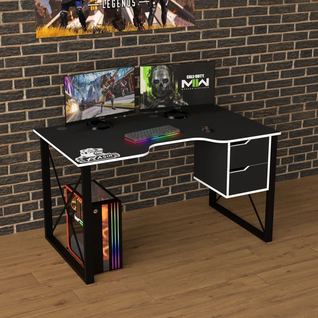 Геймерський стіл Rasin Loft-17 чорний + білий Тиса