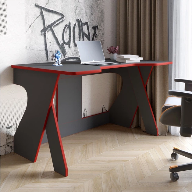 Геймерський стіл Lion Крід 130х80х74.5 Антрацит/Червоний (LION-041729)