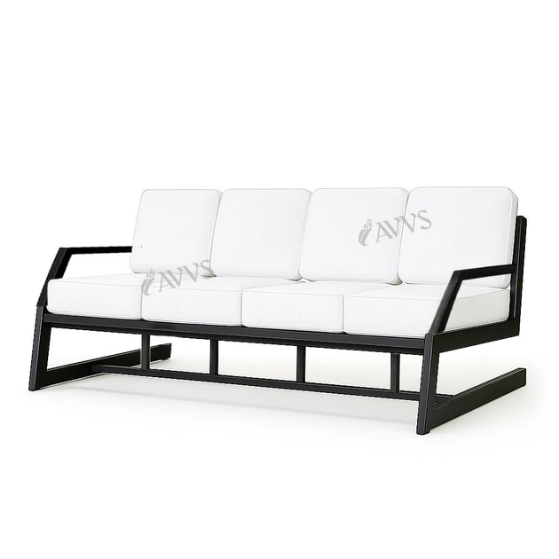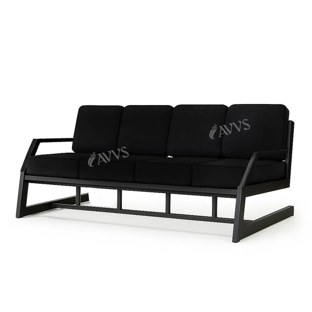Диван металевий AVVS Атлас з підлокотниками вуличний 246 см лофт рогожка чорний