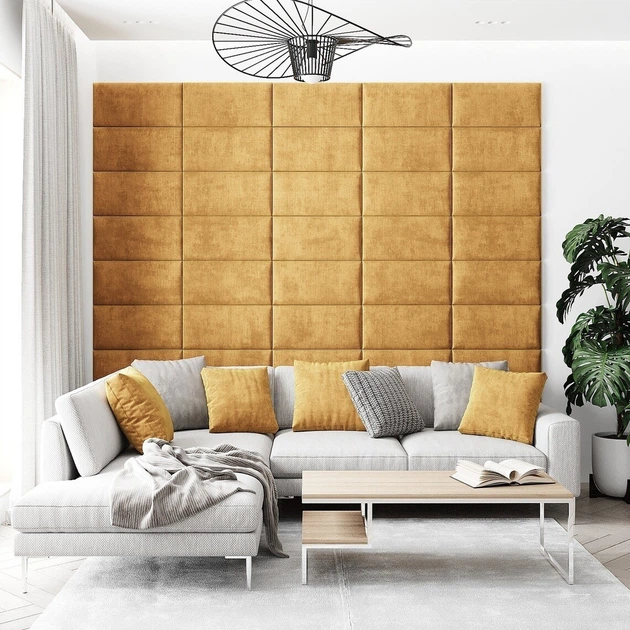 Декоративна м'яка оксамитова панель плитка модульне м'яке узголів'я ліжка Comfy Walls 20 * 50 * 4 см Золотий