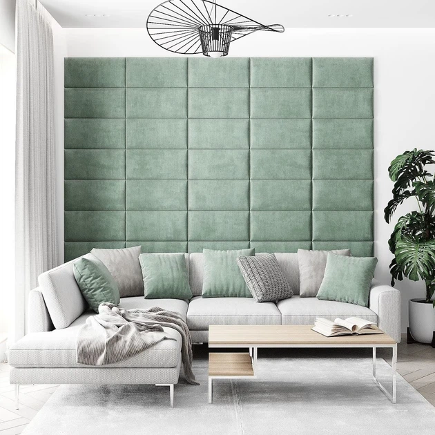 Декоративна м'яка оксамитова панель плитка модульне м'яке узголів'я ліжка Comfy Walls 20 * 50 * 4 см М'ятний