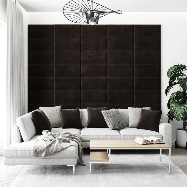 Декоративна м'яка оксамитова панель плитка модульне м'яке узголів'я ліжка Comfy Walls 20 * 50 * 4 см Коричневий