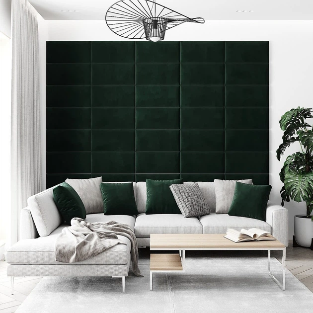 Декоративна м'яка оксамитова панель плитка модульне м'яке узголів'я ліжка Comfy Walls 20 * 50 * 4 см Зелений