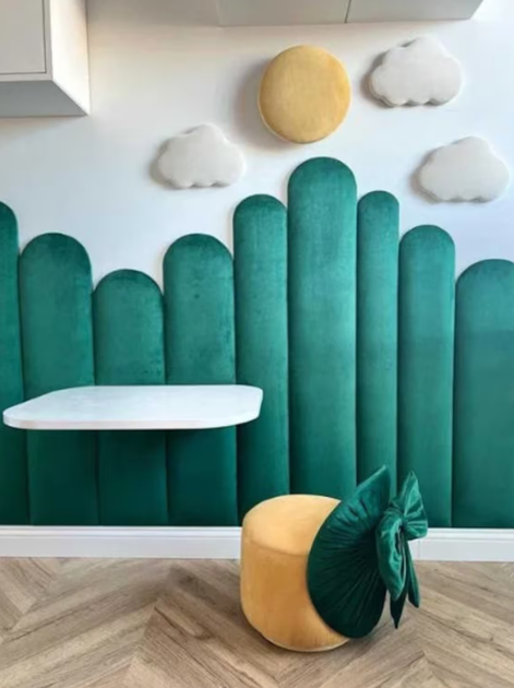 М'яка настінна панель декоративна Прямокутник зі скругленням оксамит PARIS 90х15х4см Зелений (97004pan)