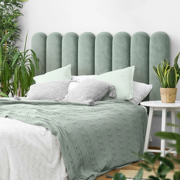 М'яка велюрова стінова панель прямокутна із закругленим краєм узголів'я ліжка з тепло та звукоізоляцією М'ятний колір 20*60*