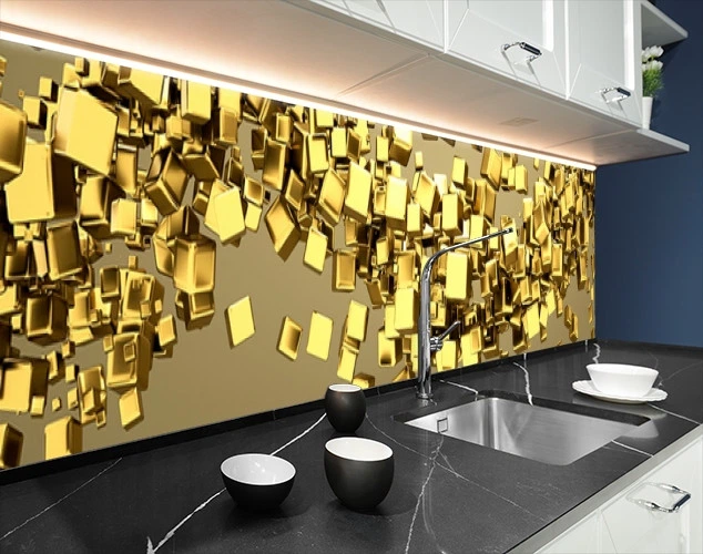 Кухонна панель жорстка ПЕТ ширяють куби золоті, з двостороннім скотчем 62 х 205 см, 1,2 мм (ПЭТ-sab083-5)