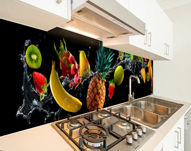 Панель на кухонний фартух жорстка фруктовий натюрморт в бризках, з двостороннім скотчем 62 х 205 см, 1,2 мм (ПЭТ-sed604-5)