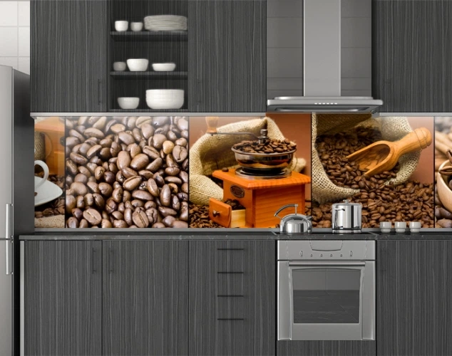 Кухонний фартух замінник скла кавові зерна, з двостороннім скотчем 62 х 205 см, 1,2 мм (ПЭТ-sed648-5)