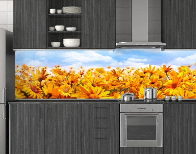 Панель кухонні, замінник скла соняшники, з двостороннім скотчем 62 х 205 см, 1,2 мм (ПЭТ-sfl11481-5)