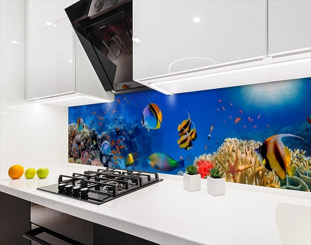 Кухонний фартух замінник скла з глибинним морем, з двостороннім скотчем 62 х 305 см, 1,2 мм (ПЭТ-san164-5)