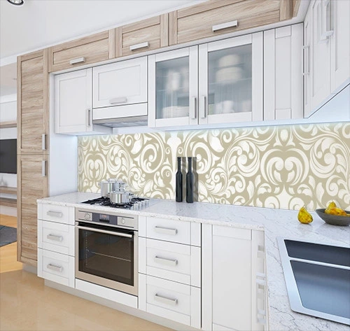 Кухонна панель на стіну жорстка бежеві візерунки, з двостороннім скотчем 62 х 305 см, 1,2 мм (ПЭТ-stx105-5)
