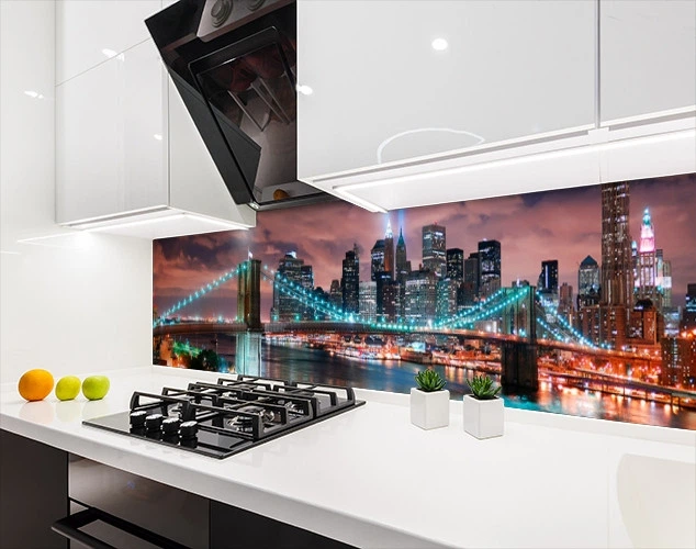 Панель кухонні, замінник скла міст з вогнями бруклінський, з двостороннім скотчем 62 х 305 см, 1,2 мм (ПЭТ-sbr109-5)